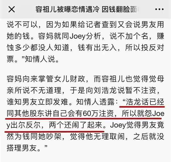 除了被曝男方“吃软饭”,更有男方说服容祖儿拿出60万为自己的店铺投资。遭到祖儿妈妈的反对之后两人竟因此吵架。