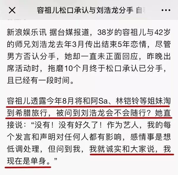 而之前两人被爆料分手,还被猜测是为刘浩龙演唱会做宣传,尽管容祖儿在采访中声明不需要这样做,却也难逃外界的猜测。