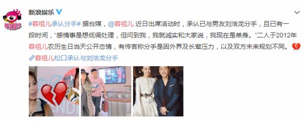 不过不少知道容祖儿恋情的粉丝和网友纷纷表示,分的好!容祖儿与男友刘浩龙的恋情一直不被外界看好,这段被港媒称作“龙儿恋”的感情更是打上了“女尊男卑”的标签。甚至在当初公开恋情时,容祖儿还与好友何韵诗产生矛盾,直到近几年才重新化解。