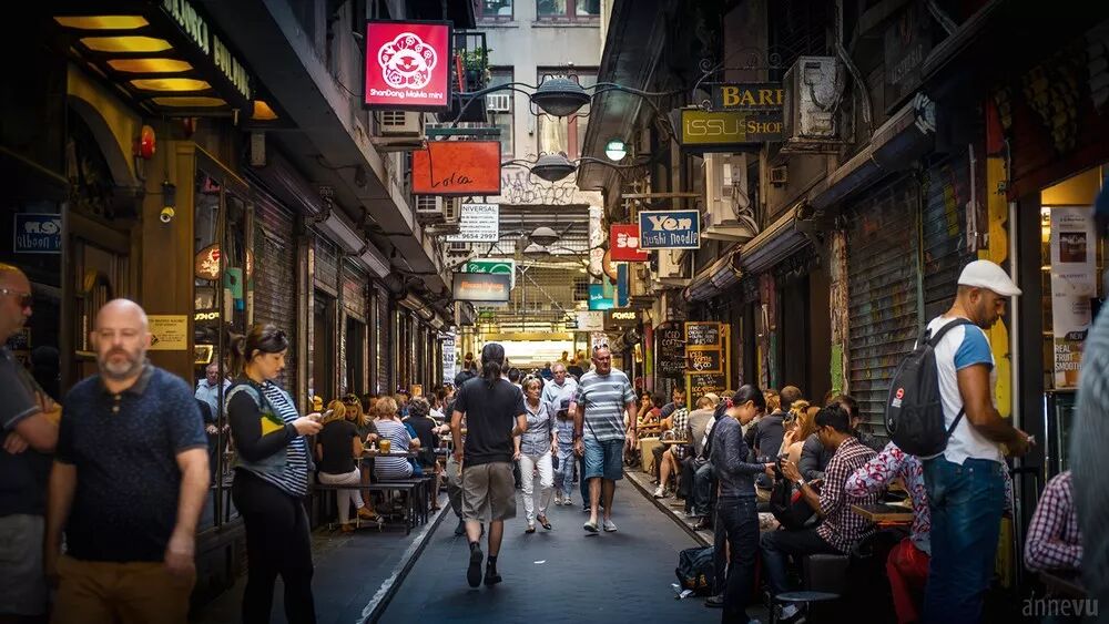 这条和“硬件”一点不沾边的小巷全是餐厅,红砖铺设的地面从伯克街(Bourke Street)一路延伸到一路延伸到朗斯戴尔街(Lonsdale Street)。