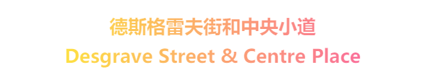 斯格雷夫街(Desgrave Street)以及其延伸的中央小道(Centre Place)是墨尔本人最为津津乐道的两条小巷。如果一本关于墨尔本的书的封面不是弗林德斯火车站,那多半便是这里。德斯格雷夫街的中央设有暖炉和遮阳棚,这样无论晴雨,墨尔本人都可以聚在这里享受两边店内的美食。