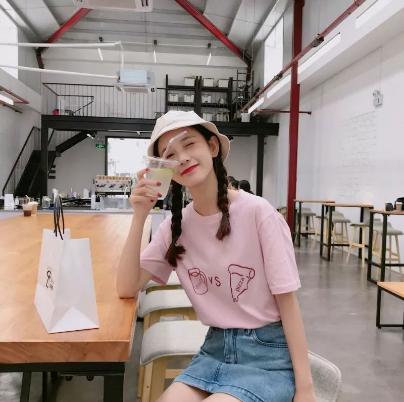 浅紫色连帽卫衣+白色半身蛋糕裙