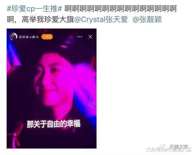 张天爱博文中的“双人床”图标,更是暗戳戳的盖章了两人让人羡慕的友谊。这神奇的操作引起粉丝的狂热,自发组成了"珍爱"的cp粉。