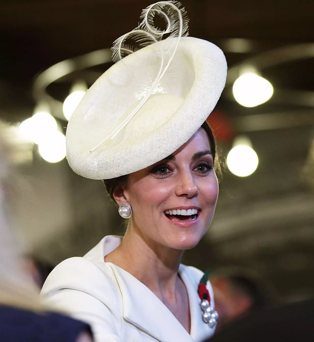 佩戴一款纪念版红色罂粟花胸针与珍珠胸针,