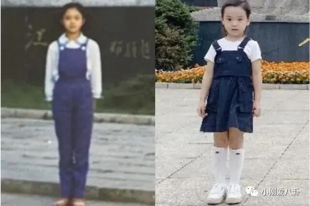 那是一张对比照,是9岁的董璇和小女儿的对比照,同一个地点同一套服装。