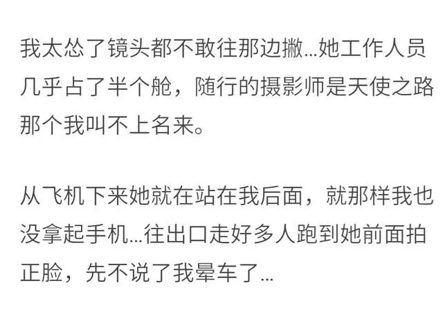 有网友在飞机上偶遇李宇春,说与李宇春同行的工作人员几乎占了大半个头等舱。大牌明星出趟门,不仅声势浩大,花费还不低。本来以为只是经纪人和助理等比较亲近的人会和李宇春一起坐头等腔,结果发现所有随行的工作人员都坐头等舱,真是壕无人性!同行的还有天使之路的摄影师张悦,好像是去广州拍某杂志封面。