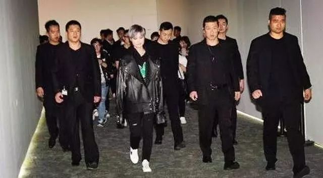 女大佬既视感,身边跟着一群黑衣保镖,看起来好像黑道大哥。