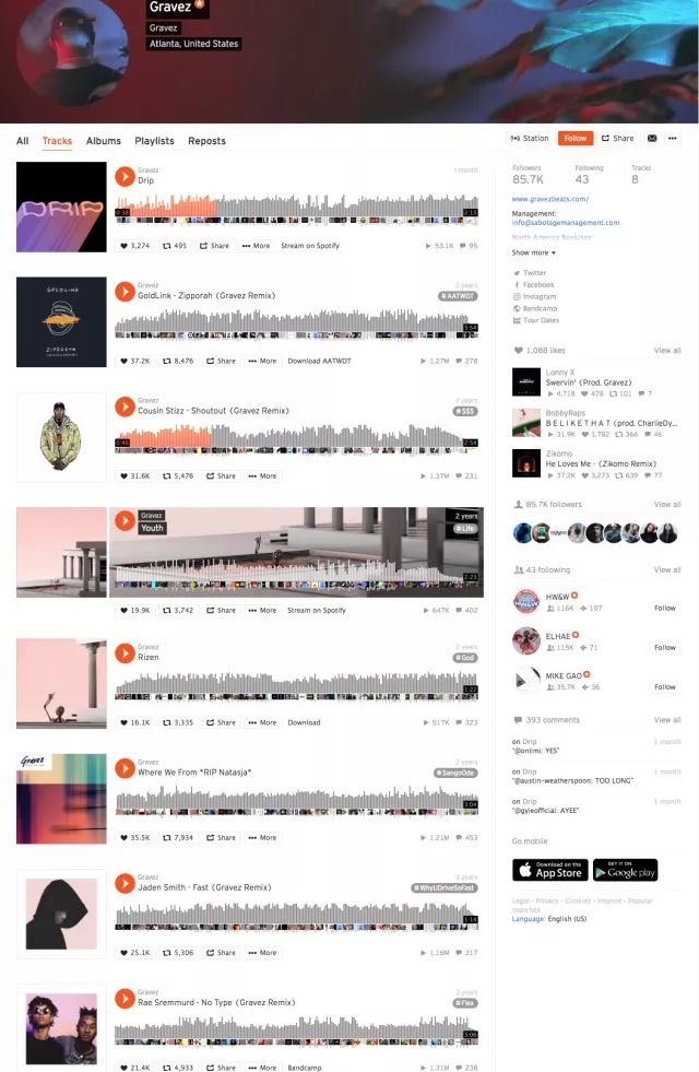 现Soundcloud拥有粉丝85.7k
