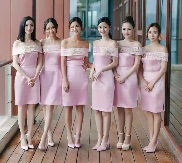 由陈乔恩、钟欣潼、胡冰卿、袁子芸、Freya、Andrea领衔的“史上最美伴娘团”身着统一的粉色礼服齐聚新娘陈妍希房间。