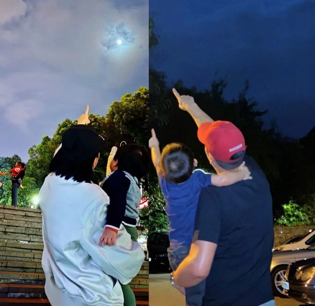 去年中秋节,李乘德和大宝李奕霆在香港赏月,胡杏儿和小宝李奕霖在宁波赏月,只能靠p图团聚,千里共婵娟。不过终于熬过了这段不算太长但又非常艰难的岁月。
