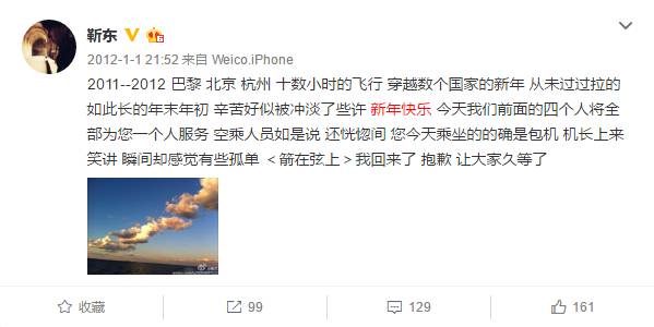 A:从巴黎坐上飞机就开始,穿越整个欧亚大陆,一直1月1号,一直飞到北京1月1号,到北京也是,正好中午的1月1号,又是一个新年,一个元旦。