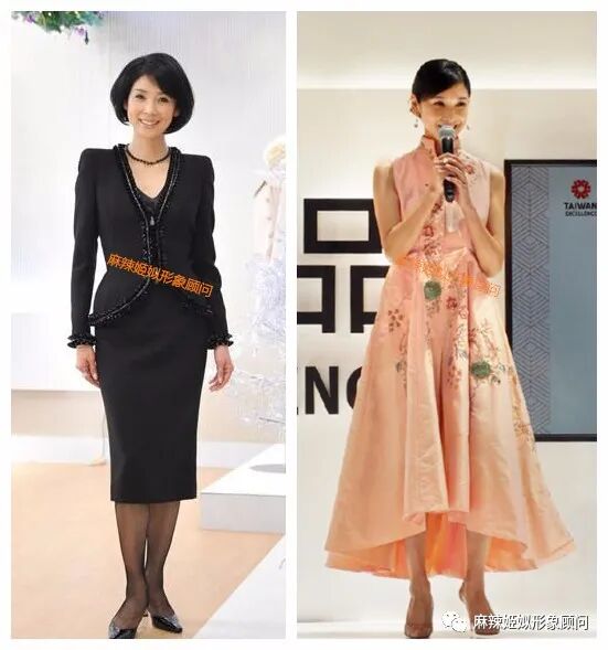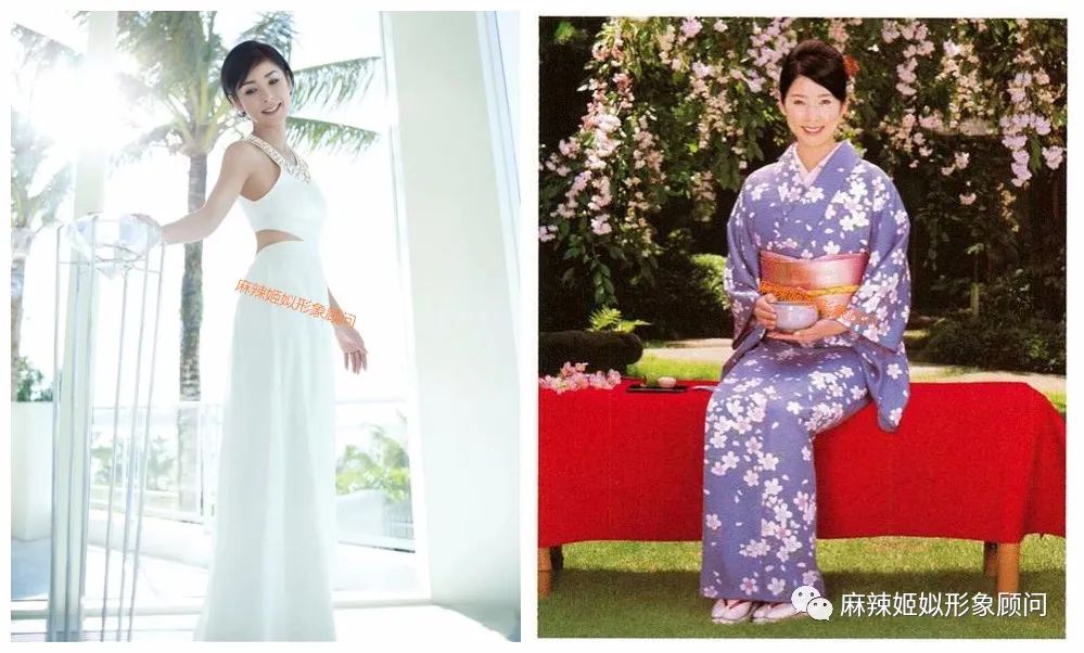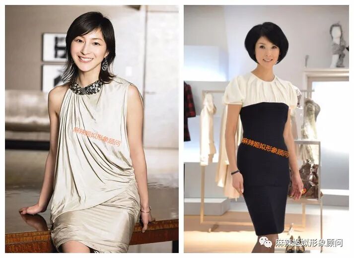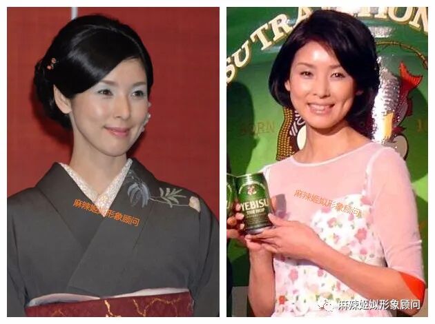 我们在整体穿搭中,你发型很对的话,穿衣的范围可以扩大,只是你的服饰很对,发型只是适合的状态,组合在一起,也会比服饰可用,但不是很好,而发型很对出来的整体效果要好。看看下图左发型挺好,服饰可用的黑木瞳,跟右图发型可用,服装款式挺适合比,是不是很明显右图的她显得更高挑,身材比例也被修饰得更多?只是在肤色上,是不是一样很明显,左图的黑色更显她气色,而右图的粉色显得她黑?到了一定年纪,你的服饰颜色一定要对,想显得气色好的话。