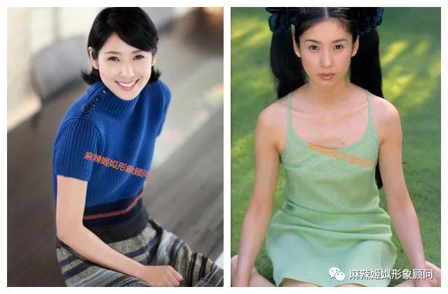 我们在选择发型的时候,跟我们的服饰是一样的,其实每一个人的围度都很大,只是,我们在选择发型的时候,跟选择的服饰一样,有特别适合你的服饰,也有很多你可以用的服饰;发型,也是这样的,有很适合你的发型,也会有你可以用的发型。看看黑木瞳刚出道的时候,左图这样规矩中带着俏皮感的发型,是不是显得她很青春,同时也把脸型修饰得很好,而右图的发型,是不是也适合她,脸型也修饰得挺好,其实左图的发型跟右图的发型,量感上比,差距是很大的,为什么都可以?这就又要回到我们的穿衣风格上来了,左图的发型是可用的状态,服饰量感很对,所有显得状态挺好,而右图的发型虽然挺适合,但是服饰量感明显小了,于是显得头比较大,只是右图的发型量感很足够,适度弥补了服饰量感小了的缺陷,看到这里,你是否明白了,穿衣风格不能只盯着一张脸看?