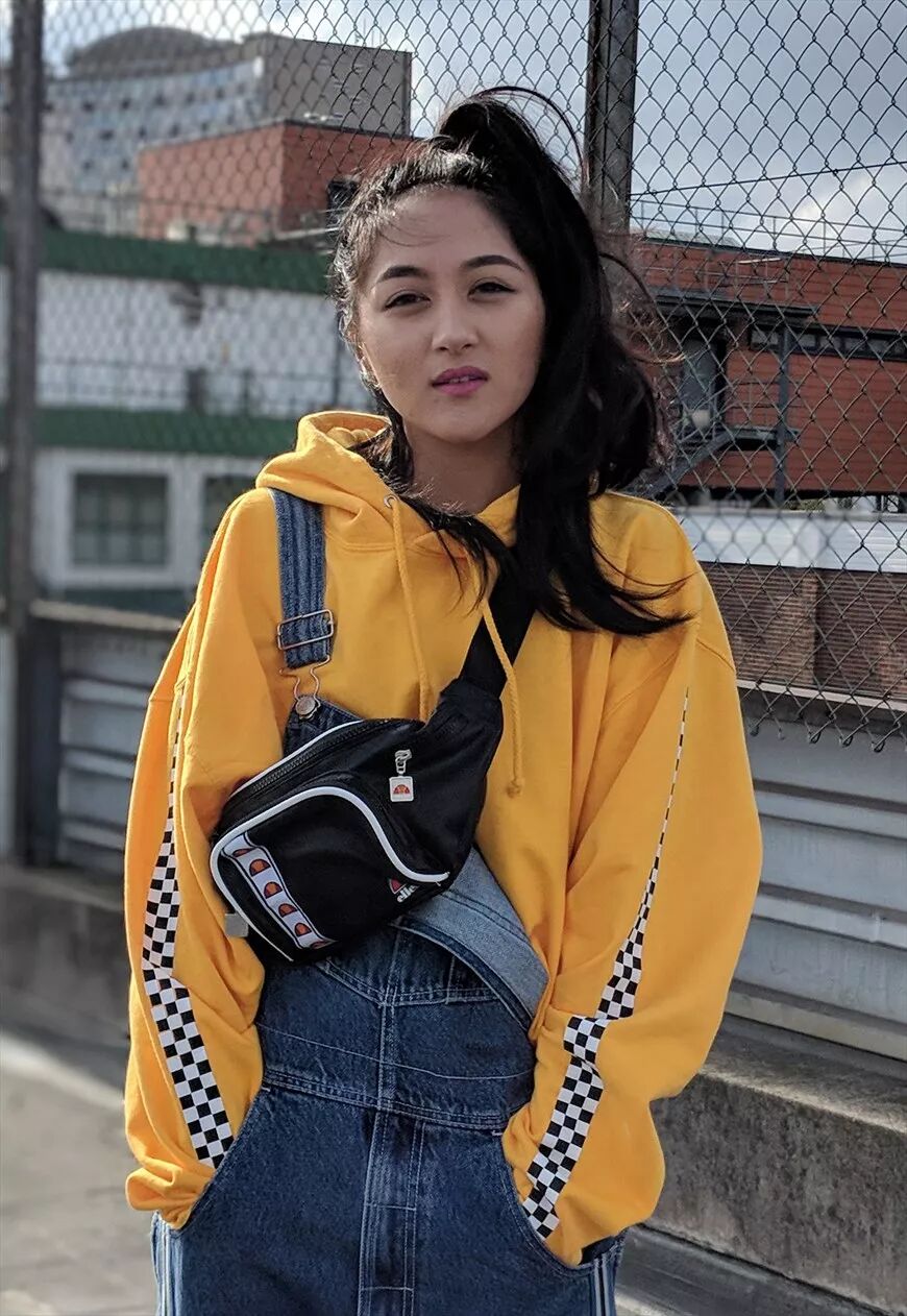 搭卫衣是最常见的了,仿佛在给文章开头打脸了。但卫衣搭背带裤确实是保险不会出错的搭配了。