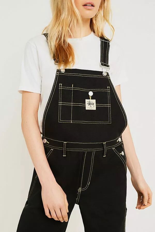 明线设计的stussy背带裤,看起来就很舒服好穿。