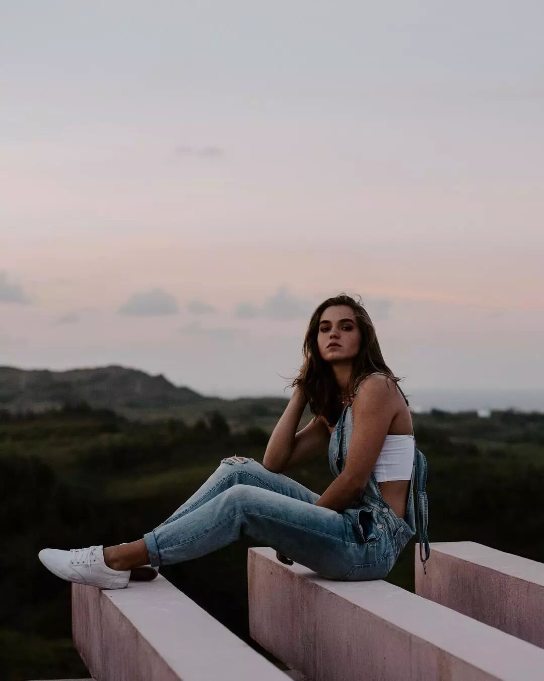 只吊一根背带的穿法,想必大家都get到了!背带裤加皮带也是绑出小蛮腰的心机搭配哦!在发型上推荐拳击辫,活力精神!