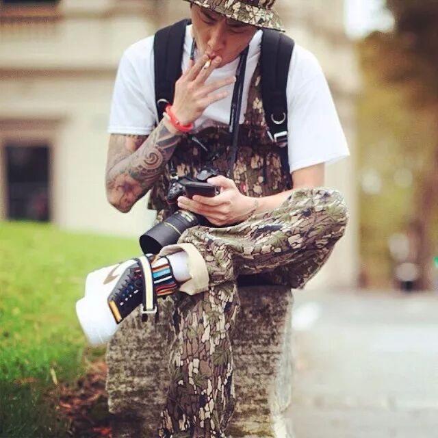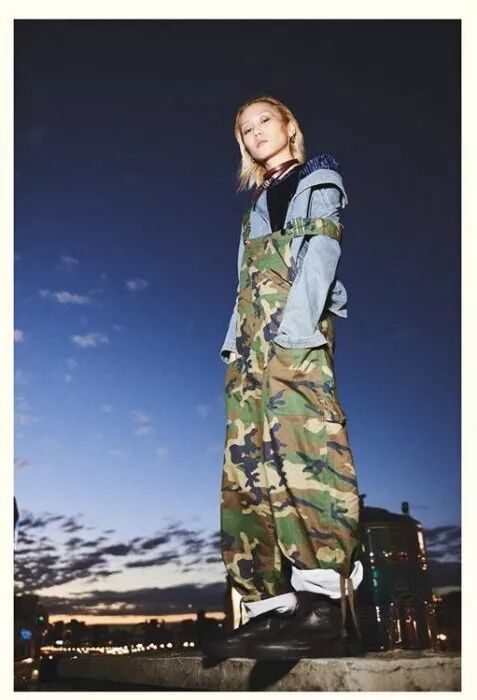 迷彩背带裤不仅比伯可以穿,女生也可以选择酷酷的迷彩风,放心!只会变酷不会变教官。