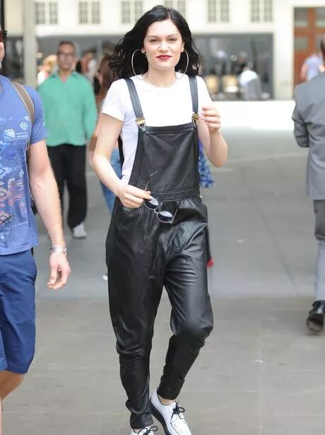 欧美性感风的结石姐Jessise J 选择了黑色皮质背带裤,配上超大耳环,随时都可以摇滚起来了。
