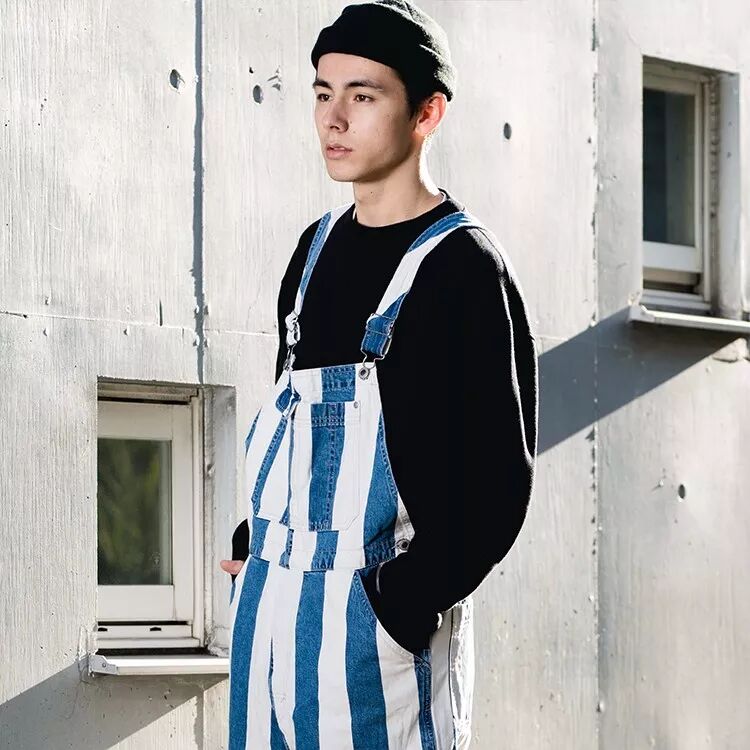 对于男生来说,背带裤会是比较显嫩的单品,本着「男生还是穿得干净会比较好看」的原则,建议男生在背带裤搭配上可以简单为主,卫衣、T恤就可以拿出来了,但在细节上可以酷点,也可以选择迷彩、竖纹等不一样的款式。
