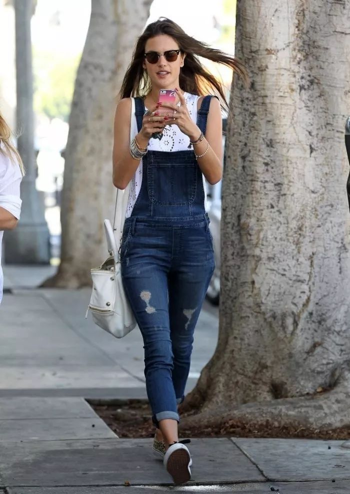 连超模ALESSANDRA AMBROSIO都HOLD不住,随着街头风的热潮,现在可是宽松背带裤的天下!