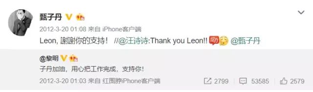 赵文卓甄子丹二人当时的微博