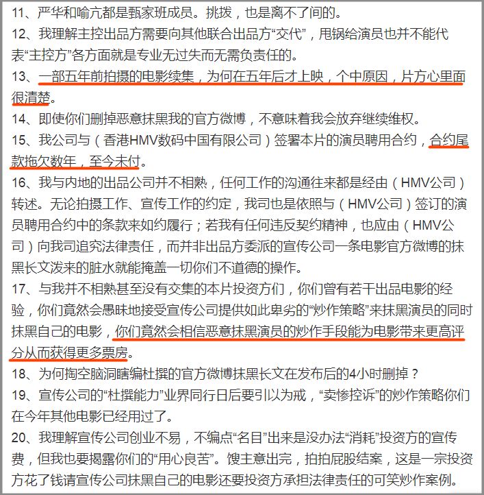 紧接着,出品方就开始罗列甄子丹的“罪状”,我来给大家画一下重点: