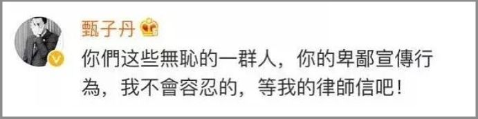 随后,甄子丹本人直接在原文下说这些是无耻的一群人卑鄙的宣传行为:坐等收律师信吧!