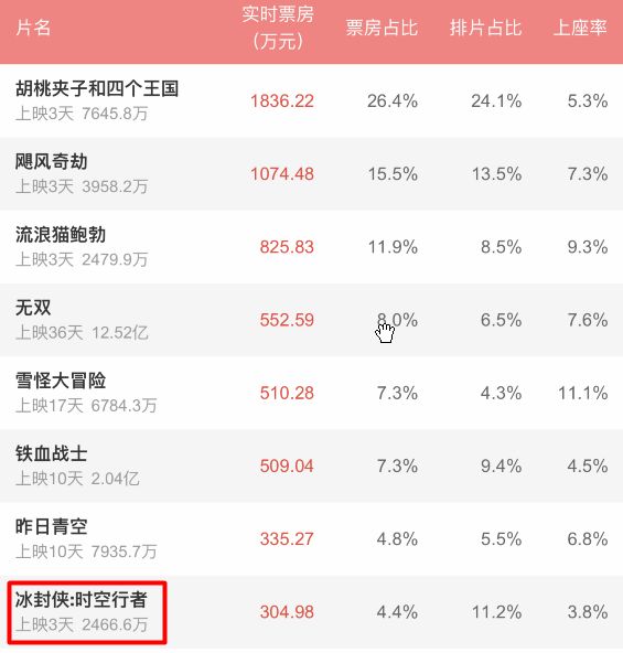 上映3天,票房成绩扑得一塌糊涂,单日成绩连上映了36天的《无双》都比不过,喜闻乐见~↓↓