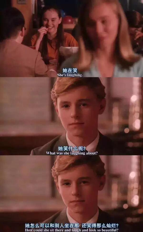 然后当他看着那个曾经整天围绕着自己笑得很开心的朱莉,现在已经开始跟其他的男生坐在一起吃饭,笑的很开心的时候。