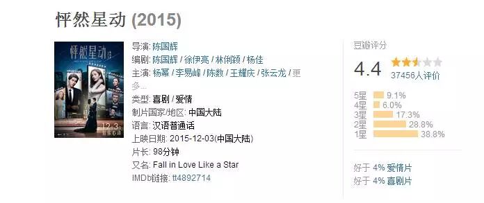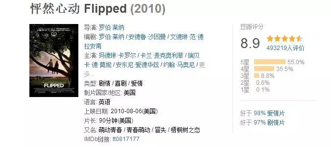 毕竟跟这部电影只有一字之差的,由国内当红一线女明星和某小鲜肉主演的电影《怦然星动》只有4.4分。