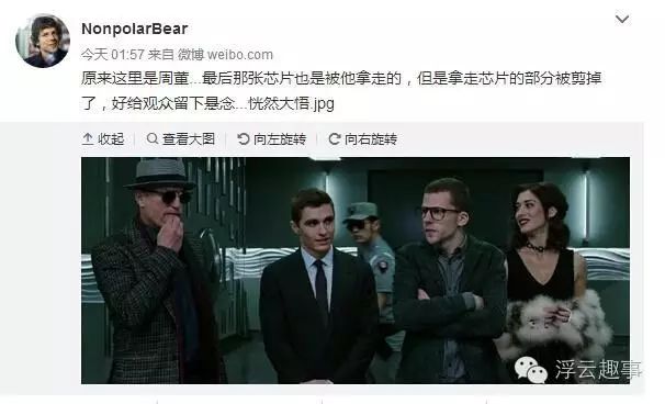 近日,有网友在微博上贴出了一张电影《惊天魔盗团2》中的剧照,而该剧照中居然惊现小公举周杰伦的身影!!!这是除了原本大家所熟知的周杰伦在里面扮演的魔术店老板李以外的第二个龙套角色--保安,这酱油打得。。。大家四不四也惊呆了?