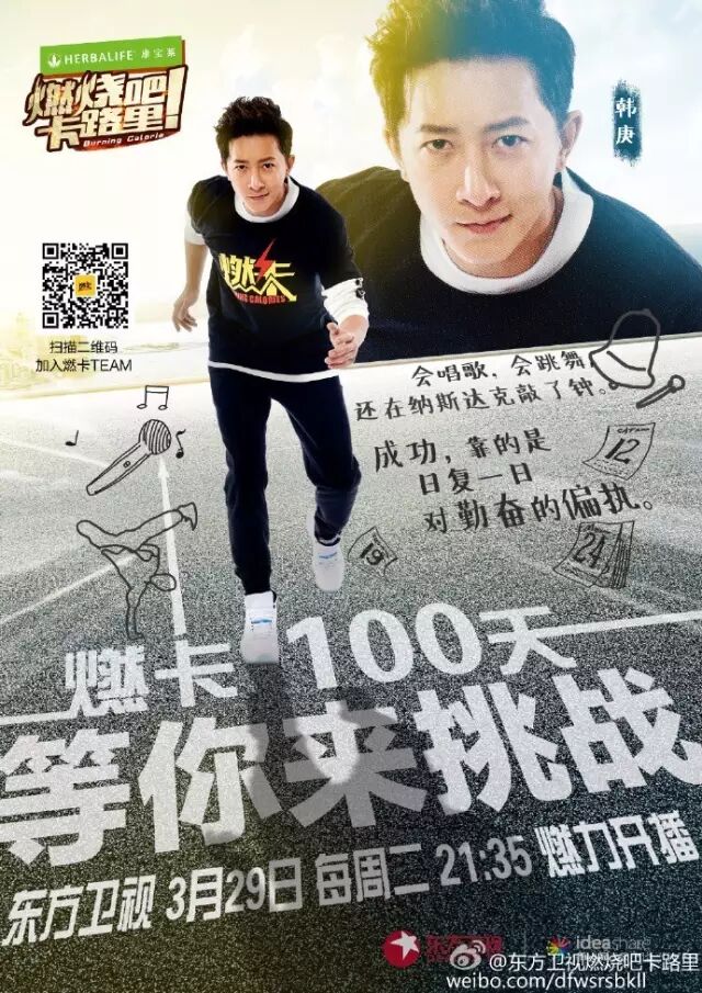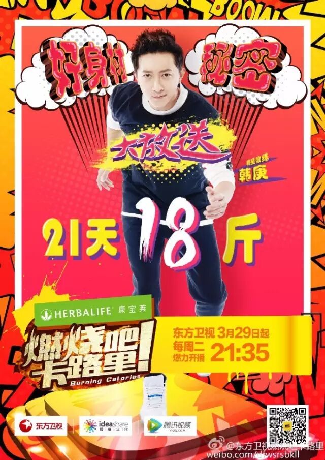 3月29日晚21:35,原创明星健康瘦身节目《燃烧吧!卡路里》将登陆东方卫视,作为首期明星教练的韩庚,将在监督下,带领燃卡家族开启疯狂燃脂模式。