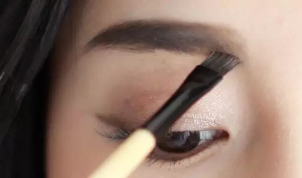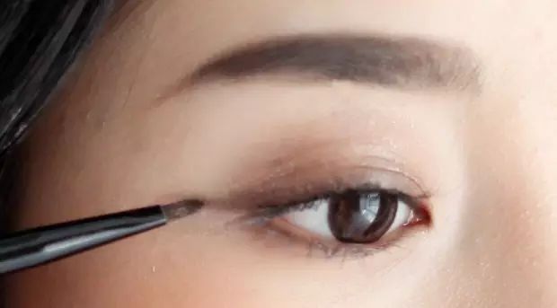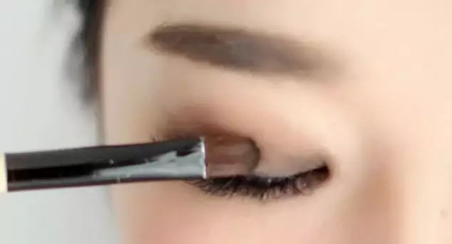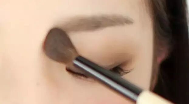 用平头圆刷在双眼皮位置打圈过度亚光棕色眼影。