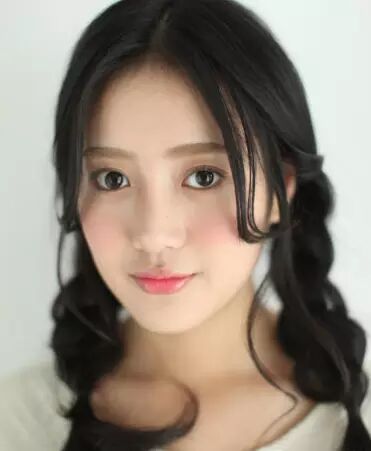 强调妆面的素肌感,使用亚光通透粉底,薄薄定妆后涂抹粉色腮红。