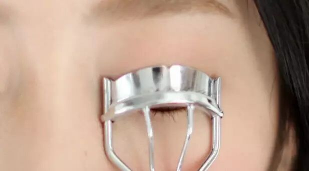 用睫毛夹从睫毛根部轻轻夹起,再从睫毛中部夹一次。