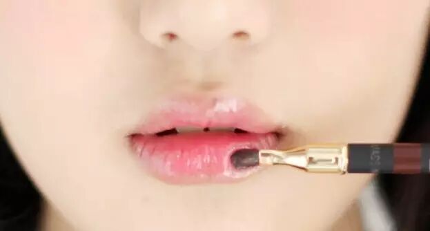 直接涂抹水润的粉色唇彩,涂抹均匀即可。