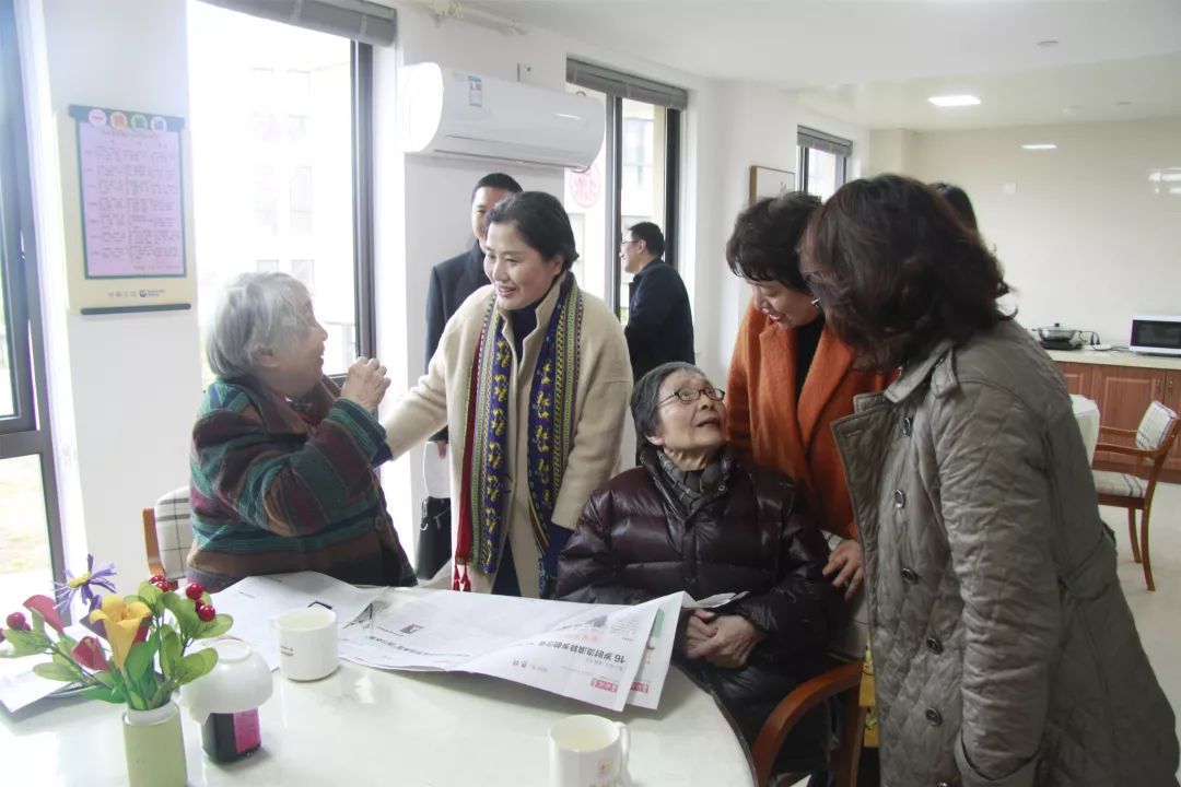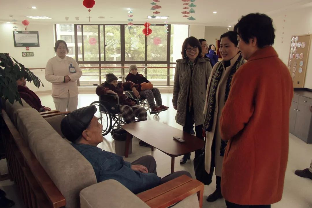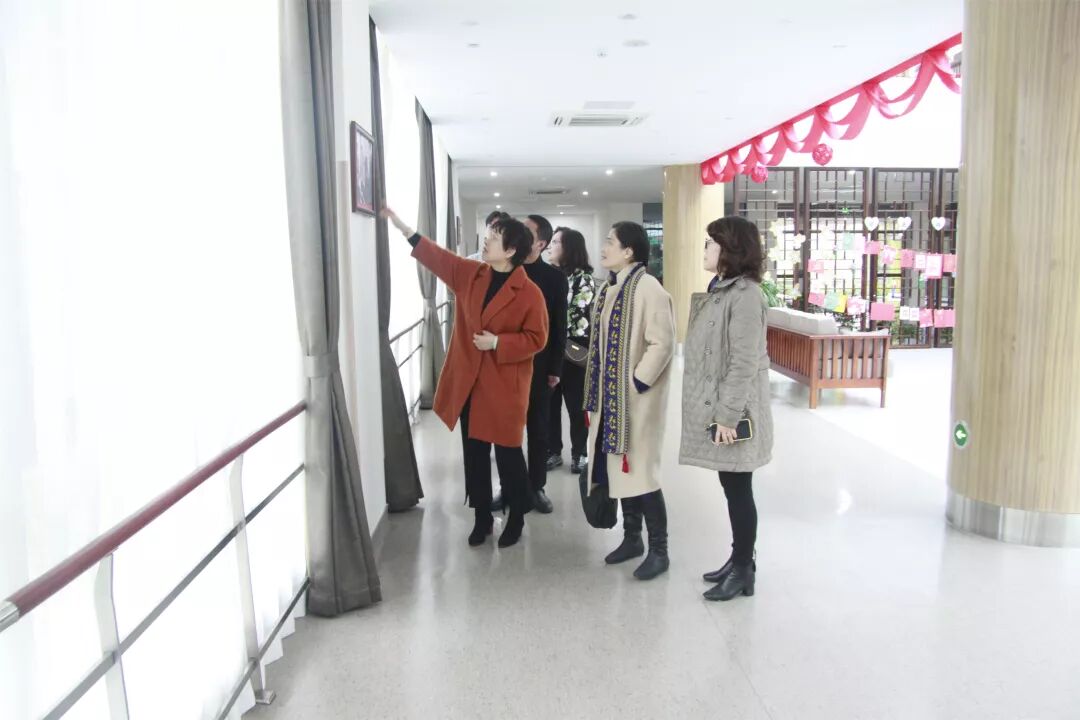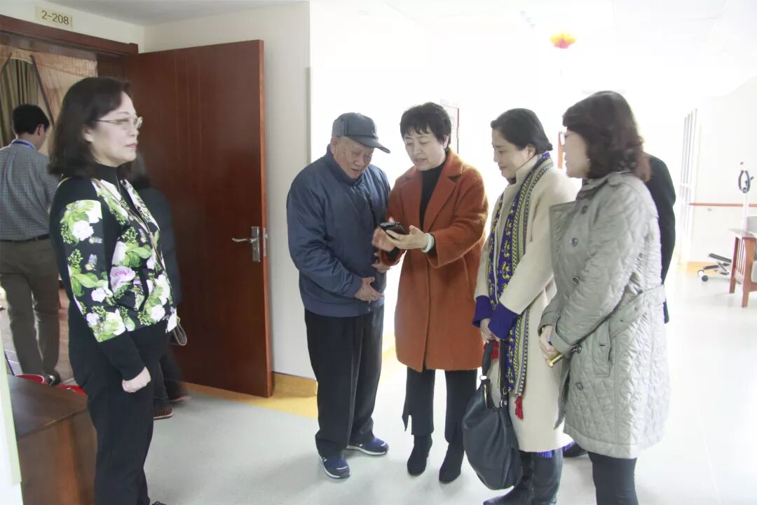“我们希望能让长者在这里老有所为、老有所学、老有所乐”园长姜兰芳引导胡兵一行实地参观考察怡福家园的住养区生活设施、医养理疗设备及文化娱乐厅室等。