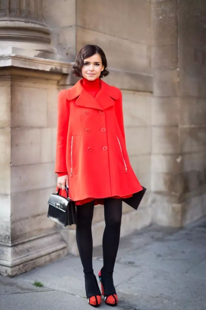 俄罗斯时尚博主Miroslava Duma这一身搭配非常有节日气氛,红色外套搭配淑女包,再加上简洁的高领内搭裙和魅力十足的红鞋,整体红色系的造型令人十分惊艳。