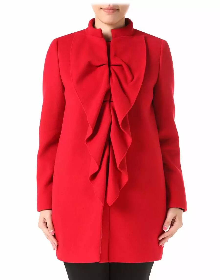作为Moschino 的副线品牌,MOSCHINO BOUTIQUE 展现了与主牌一致的趣味时尚魅力。大幅荷叶边装饰的红色呢子外套,喜庆温暖, 95%羊毛和6%山羊绒的组合,让你在寒冷的季节也能穿得美美哒!