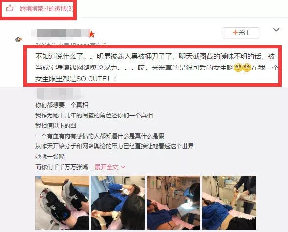 同时,闺蜜还点赞了网友的一条动态,说是:“明显被熟人黑捅刀子了,聊天截图截的暧昧不明的话,被当成实锤遭遇网络暴力,米米是个可爱的女生……”