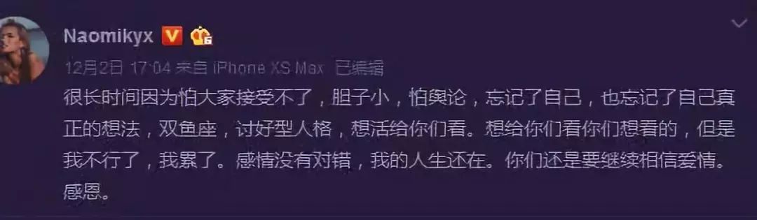 总之无论什么原因,都不应该想不开闹轻生,希望Naomi能够看开吧。同时也希望网友别因急于吃瓜就随意抨击他人,少些网络暴力…