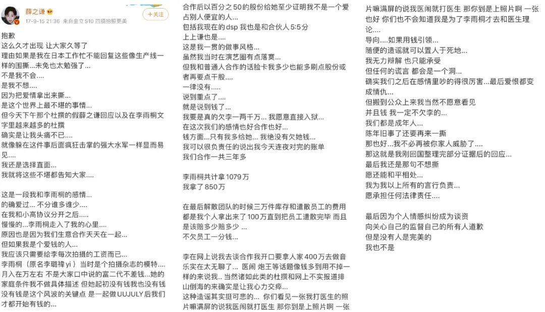 2年半前,2017年9月12日,李雨桐出现,用10天时间、4篇檄文、20张图片和一条当事人录音,让薛之谦无法证明自己不是个演员。