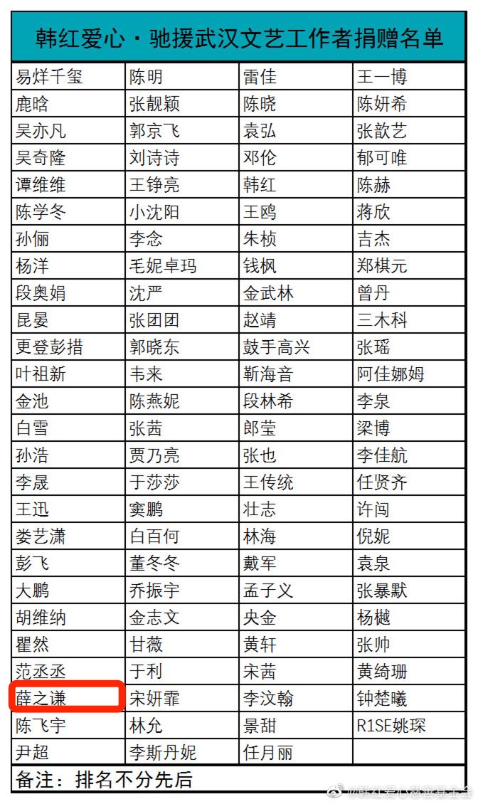 在这份排名不分先后的名单里,“薛之谦”的名字出现在一个不起眼的角落。