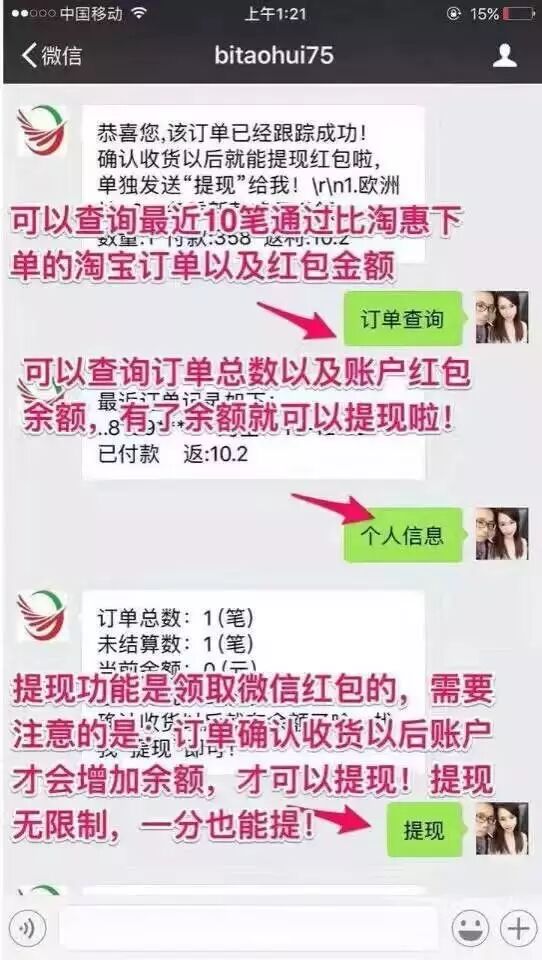 淘宝买家您好!我是比淘惠,想领取免费微信红包就找比淘惠!