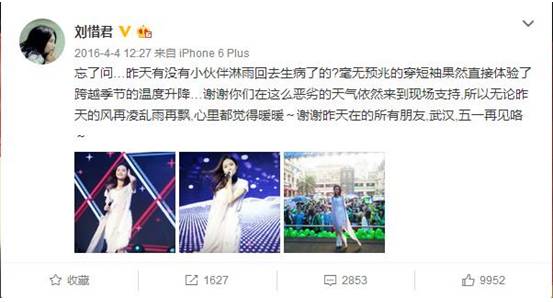 微博也显示了她恬淡的生活状态,除了工作宣传