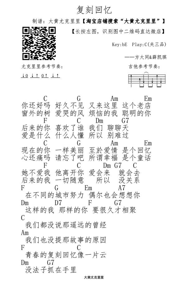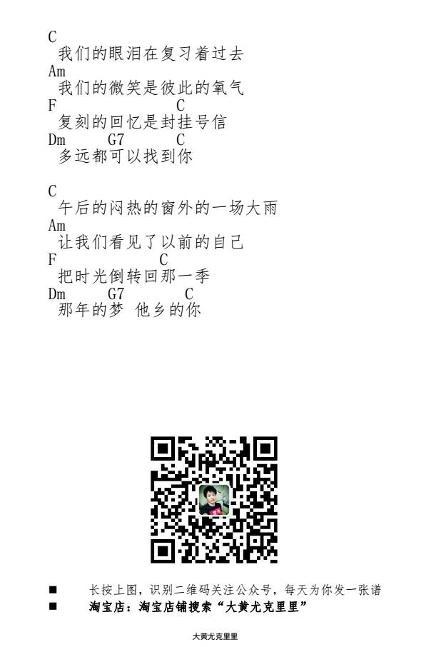 感谢你关注我的公众号,我会每天为你发一张尤克里里谱和吉他谱。