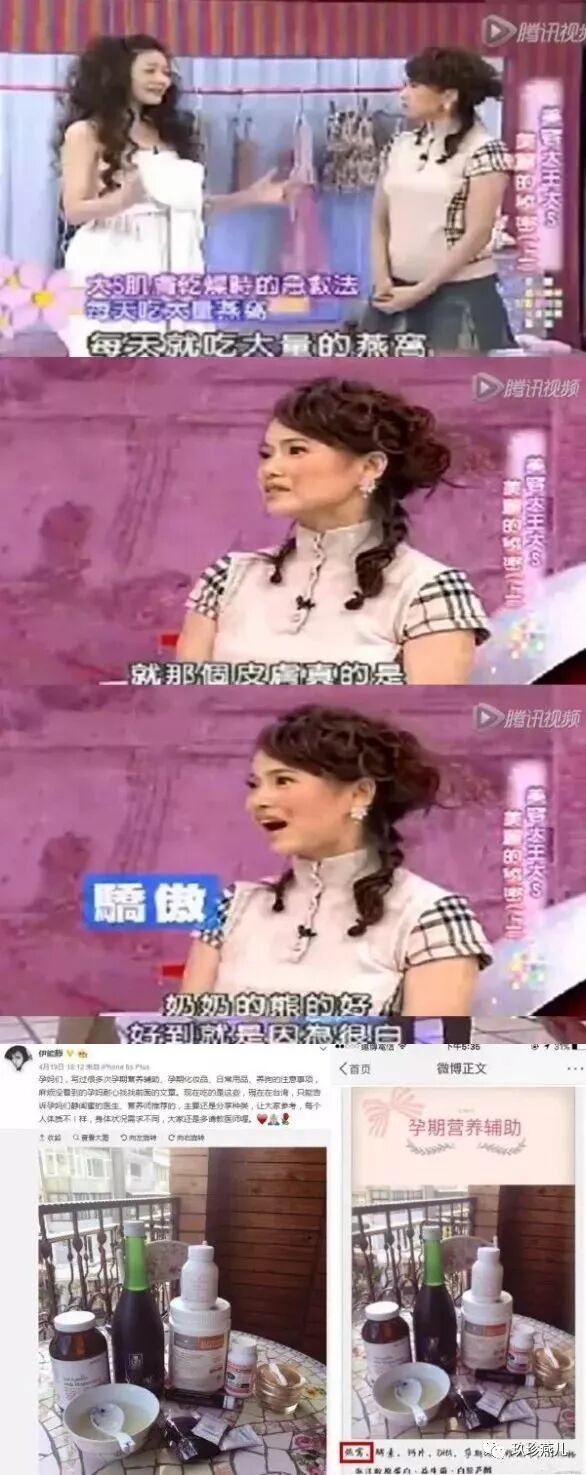 伊能静多次透露自己很爱吃燕窝,不仅在节目中大赞燕窝的好:“我觉得吃燕窝真的有用,长时间吃,不只是皮肤会好,体力上也很明显有改善。”更是在孕期通过微博为各位孕妈推荐吃燕窝,大方分享吃燕窝的心得。可见她对燕窝的狂热度有多高。