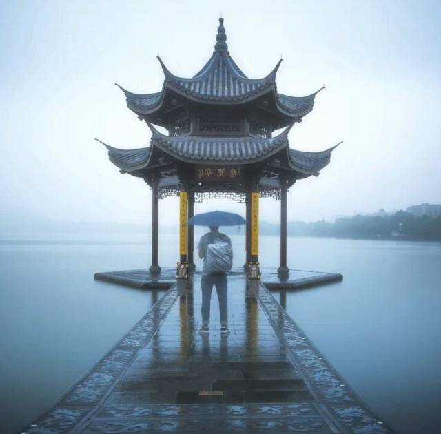 烟雨蒙蒙的西湖就成了