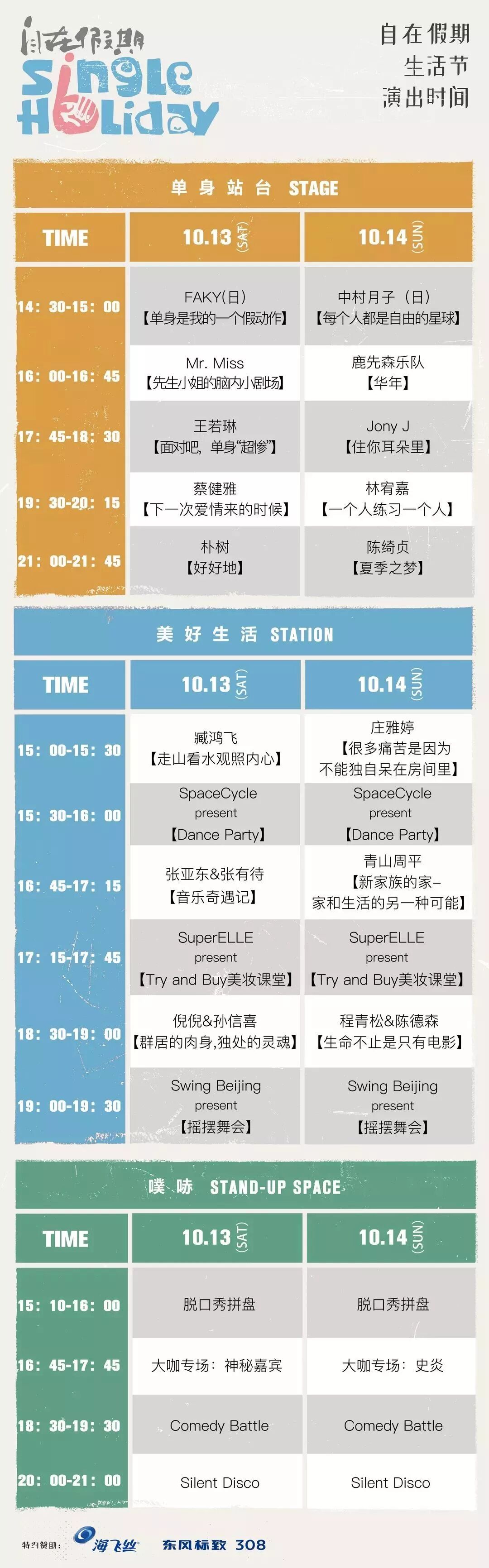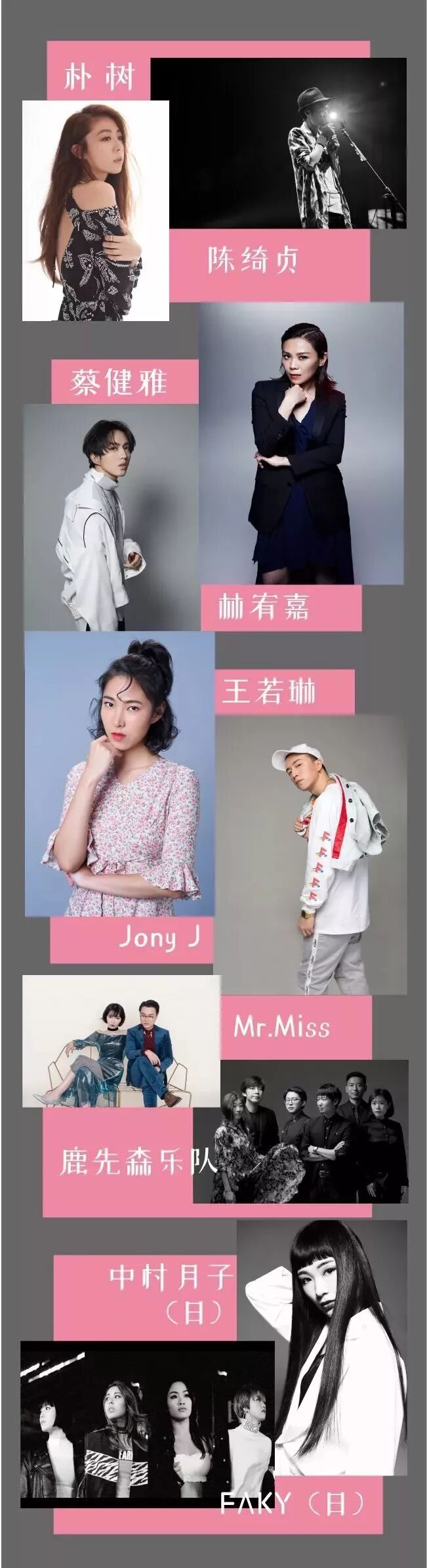 生活节将邀请朴树、陈绮贞、林宥嘉、蔡健雅、王若琳、JonyJ、鹿先森、Mr.Miss、FAKY(日)、中村月子(日)在内的最具创作精神及生活态度的音乐人来到现场,举办10场独具主题性的演唱会级表演。(名字叫生活节,这豪华阵容其他音乐节也比不了啊!)