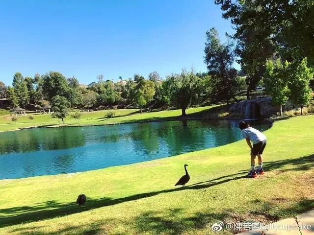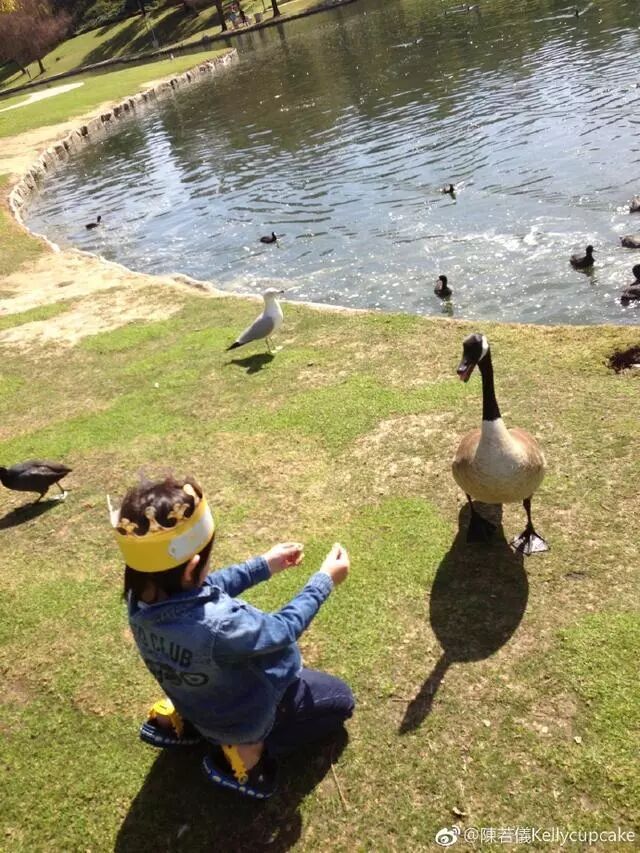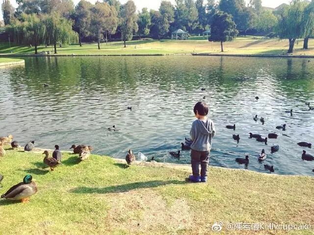 陈若仪晒出的这一组照片都是kimi小时候的照片,是在同一个湖边拍的,看来妈咪平时没有少带kimi来这里玩啊!Kimi还很小的时候,是有正面照的,不过在kimi长大以后,大家就只能看黑米哥哥的背照片啦,现在的kimi就是一个大长腿boy。